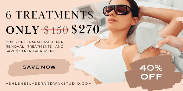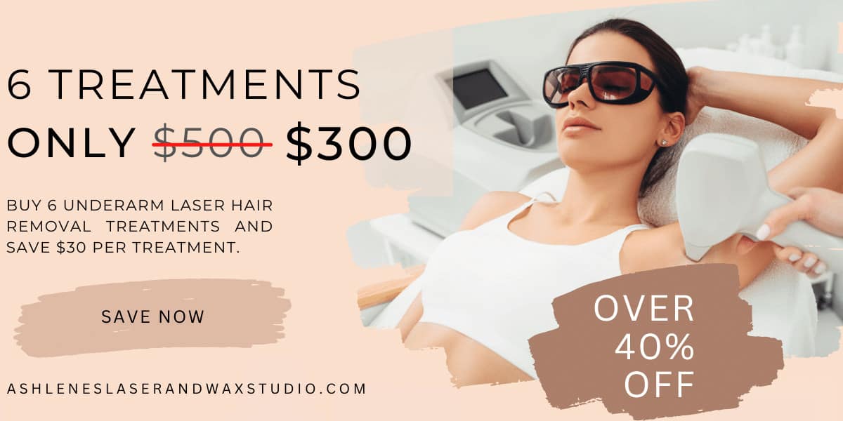 Save over 40% on your underarm laser hair removal treatments. Buy a package of 6 underarm laser hair removal treatments for only $300 ($500 regular) and save $200.